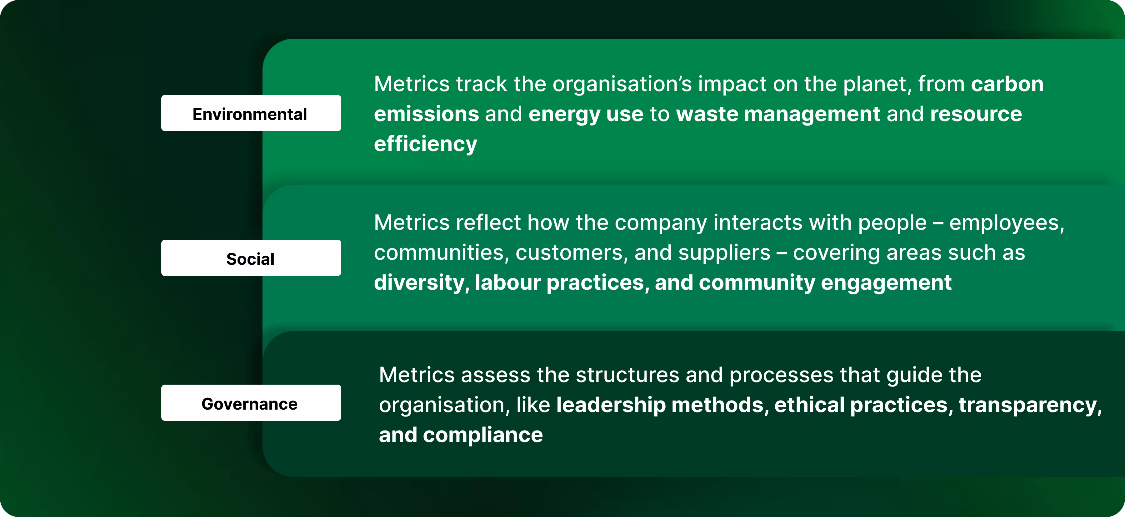 Through ESG reporting, these metrics are compiled into a standardised format, enabling investors, regulators, and the public to understand how sustainably the business operates.