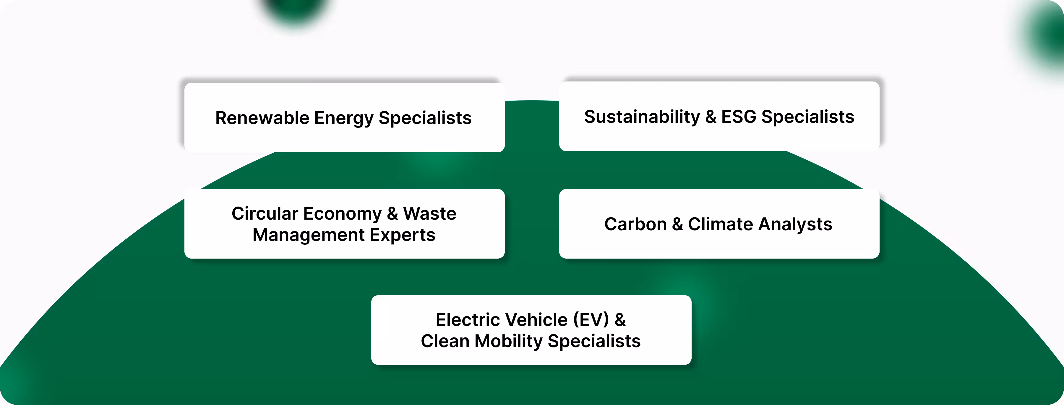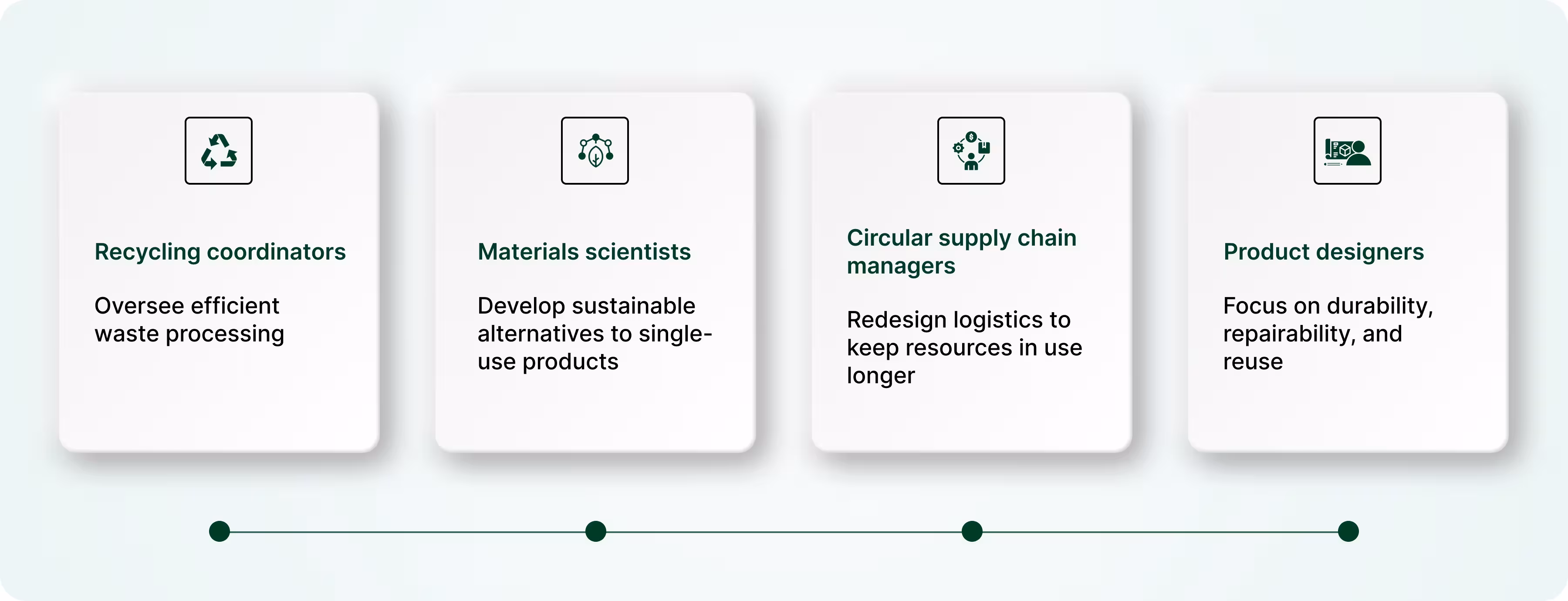 Within this category, there’s a variety of roles. Analysts track carbon footprints and prepare ESG reports, while consultants advise companies on meeting regulatory standards. Managers work to integrate sustainability goals into the overall business strategy, ensuring that environmental action is built into the way organisations operate.