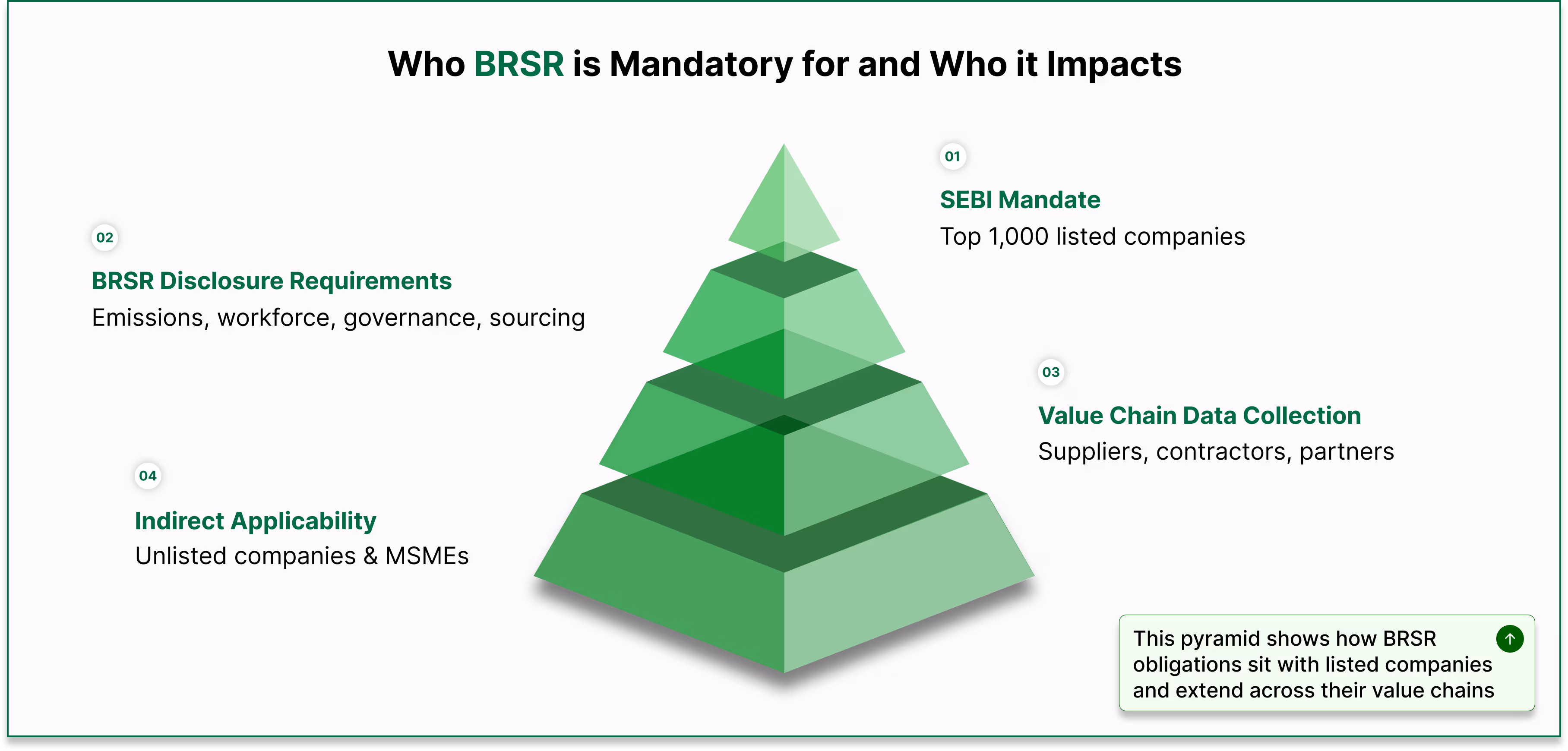 On paper, BRSR is mandatory only for the top 1,000 listed companies in India by market capitalisation. However, its practical relevance extends far beyond this group. Large listed companies operate within extensive supply chains, and their reporting obligations increasingly shape the data expectations placed on suppliers, contractors and partners.