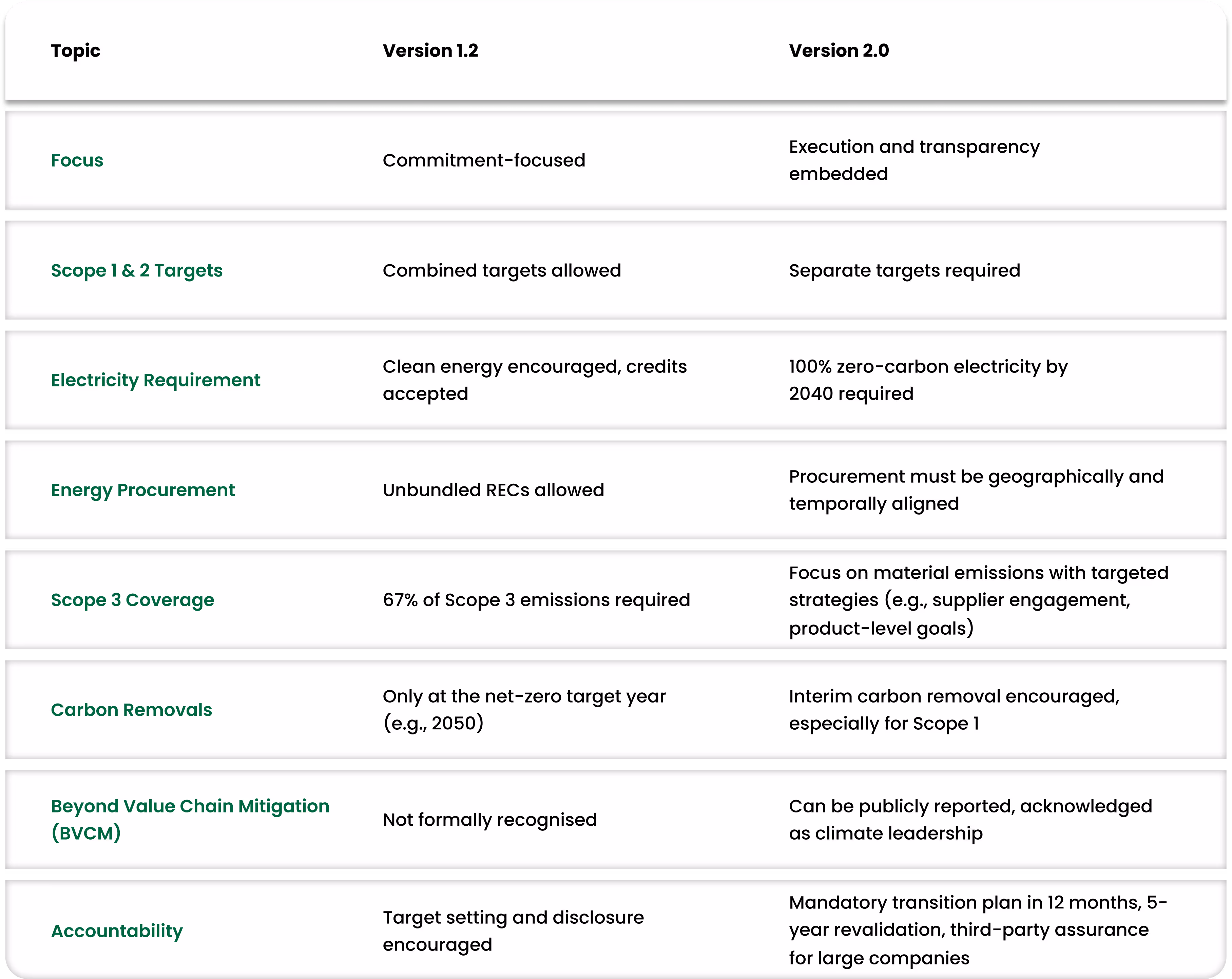 While Version 1.2 helped lay the groundwork for credible net-zero target-setting, it was largely centred on commitment rather than implementation. Version 2.0 responds to this by embedding execution and transparency into the standard itself.