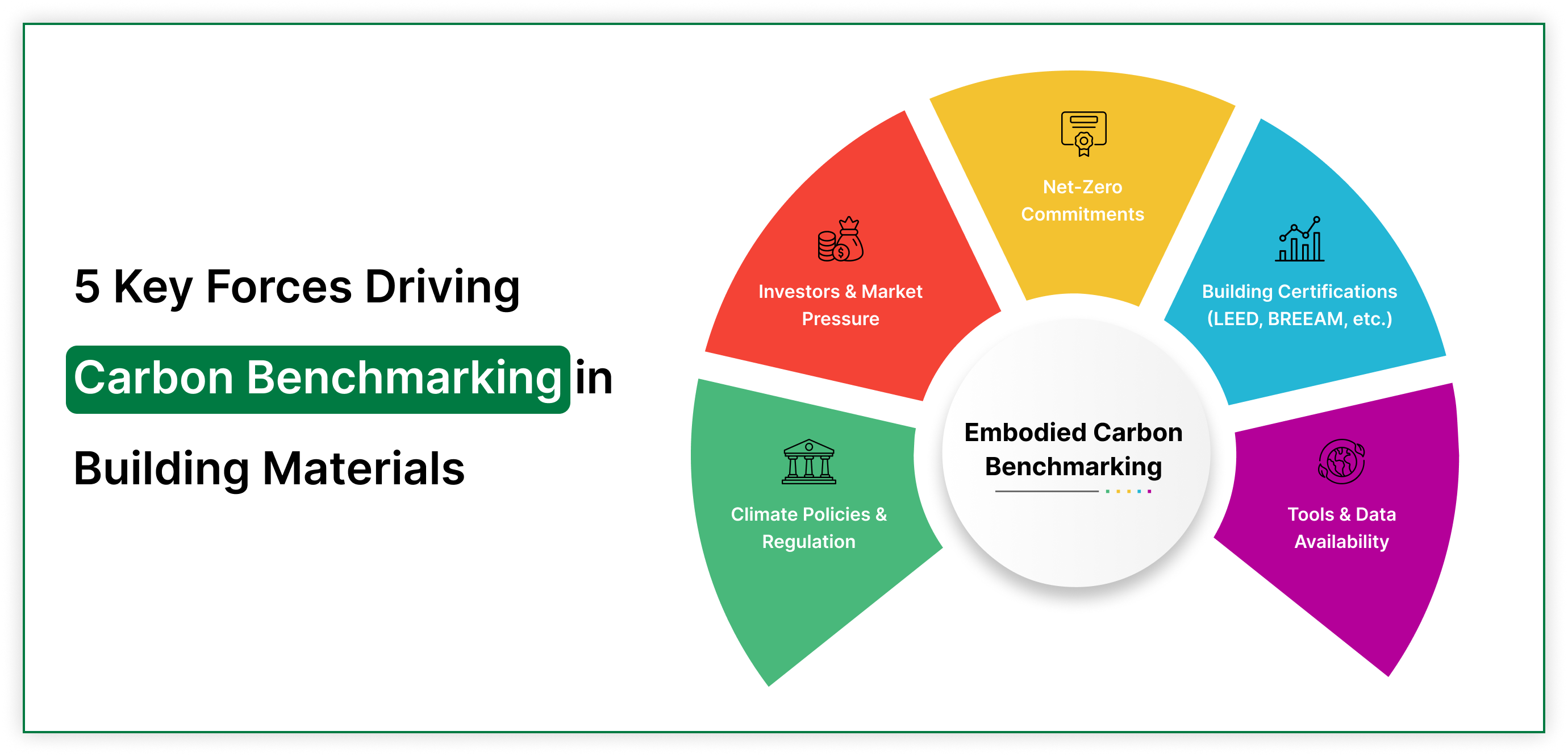 Everyone from the government to global developers to universities is pledging net-zero, but when you deep dive into the details, Scope 3 emissions (like building materials) are the biggest blind spot. Thus, to achieve this, they must benchmark and lower embodied carbon - turning it into a procurement and design priority.